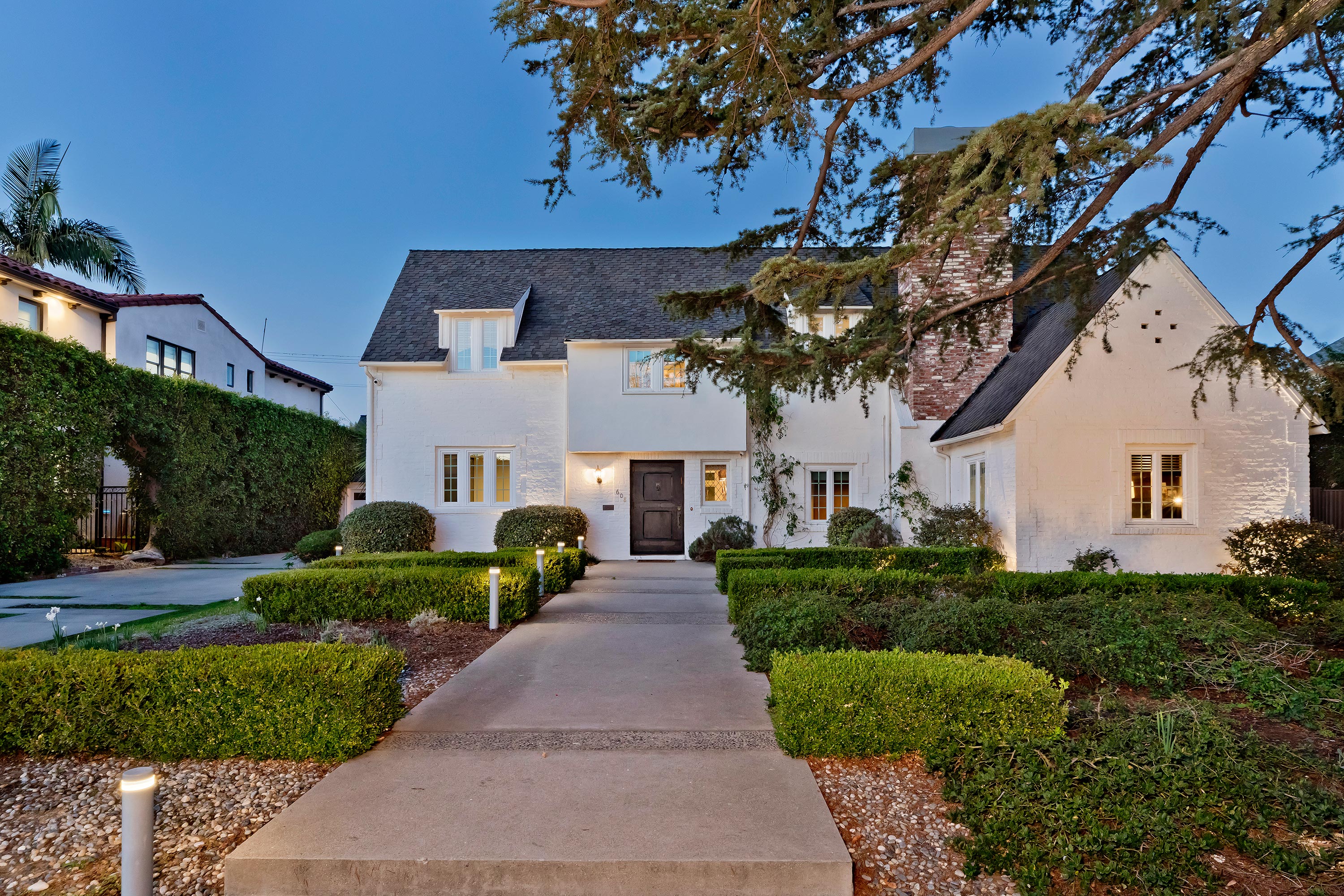 Uber charming 2sty traditional facade integrates seamlessly with dramatic redone modern interiors inside of this redone gem. Spacious sunlit rooms with beams, dark wood/polished concrete floors, and walls of glass feature an open flow for intense entertaining. Great room design affords casual areas for lounging or dining and leads to the lush resort-style grounds with lawns, mature foliage, amazing pool/spa with Baja shelf, decking, and BBQ center. Newer cook's kitchen with top stainless appliances along with endless storage and prep space. Baronial formal dining room/living room with beamed ceiling. Separate quaint front office/study downstairs with fireplace. 3 bedrooms upstairs including a mammoth owner's suite with luxurious newer bathroom and huge walk-in closet. Generous guest suite downstairs. Sited on one of the westend Flats' most coveted roads and moments to the best of Beverly Hills and the Westside, this is the perfect place to call "home".